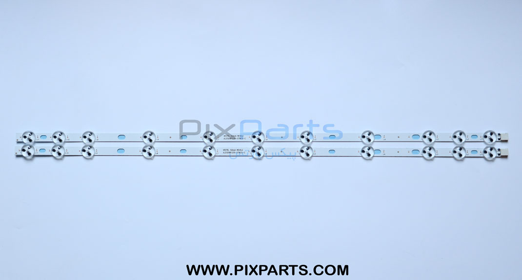 قطعه مورد نظر بک لایت تلویزیون توشیبا 32 اینچ 32W1433 – 32W1333 – 32LD145E میباشد که دارای 2 ردیف (2 شاخه) که هر شاخه دارای 11 عدد ال ای دی به طول 58cm سانتی متر با ولتاژ کاری 3V ولت میباشد.