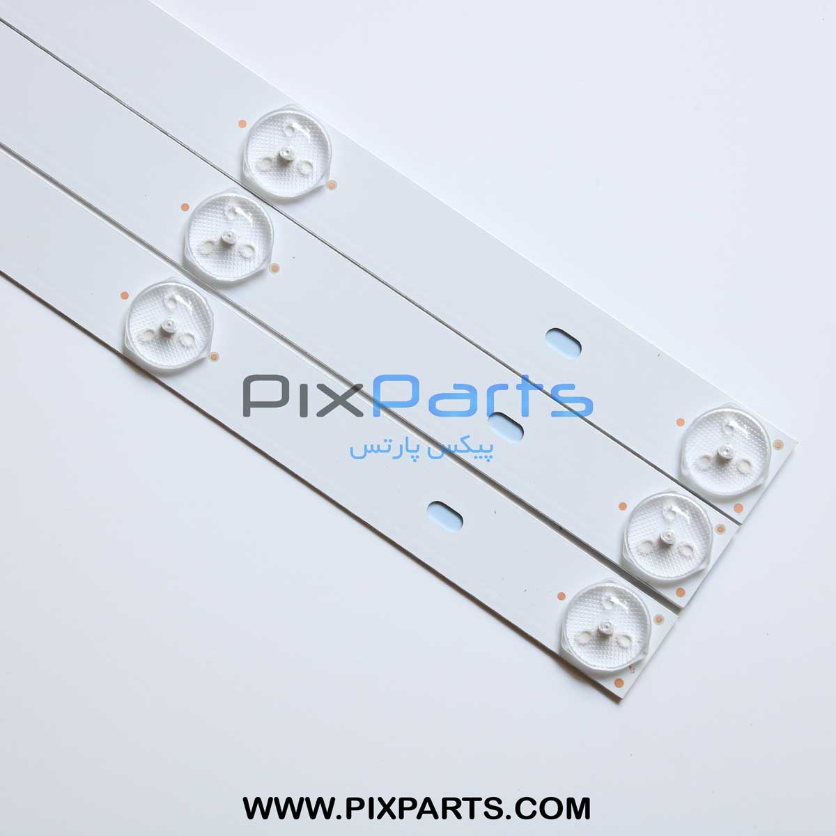قطعه مورد نظر بک لایت تلویزیون ایکس ویژن 32 اینچ 32XK532-32XK3270-32XS532 میباشد که دارای 3 ردیف (3 شاخه) که هر شاخه دارای 8 عدد ال ای دی به طول 59cm سانتی متر با ولتاژ کاری 3v ولت میباشد.