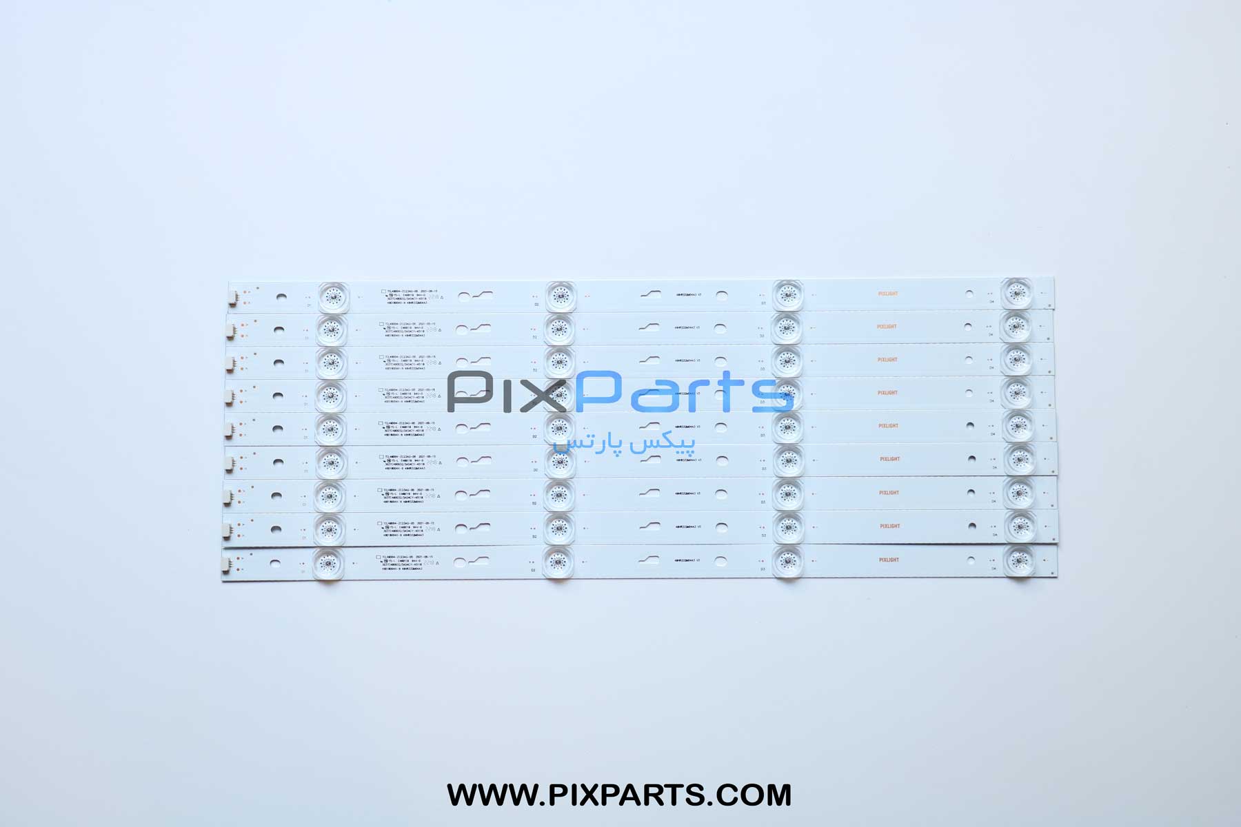 قطعه مورد نظر بک لایت تلویزیون جنرال مکس 49 اینچ GM49000T میباشد که دارای 9 ردیف (9 شاخه) که هر شاخه دارای 4 عدد ال ای دی به طول 45cm سانتی متر و ولتاژ کاری 3v ولت میباشد.