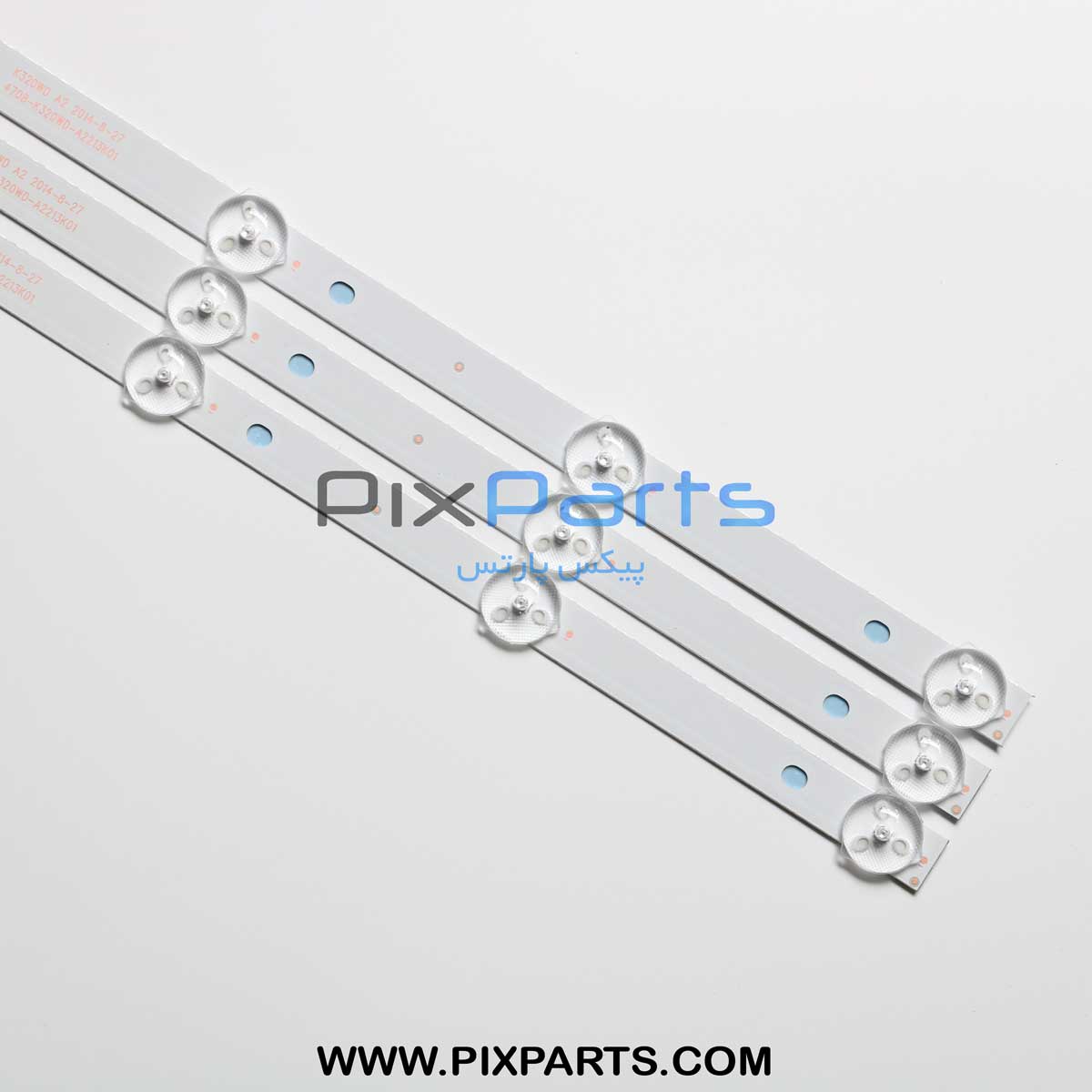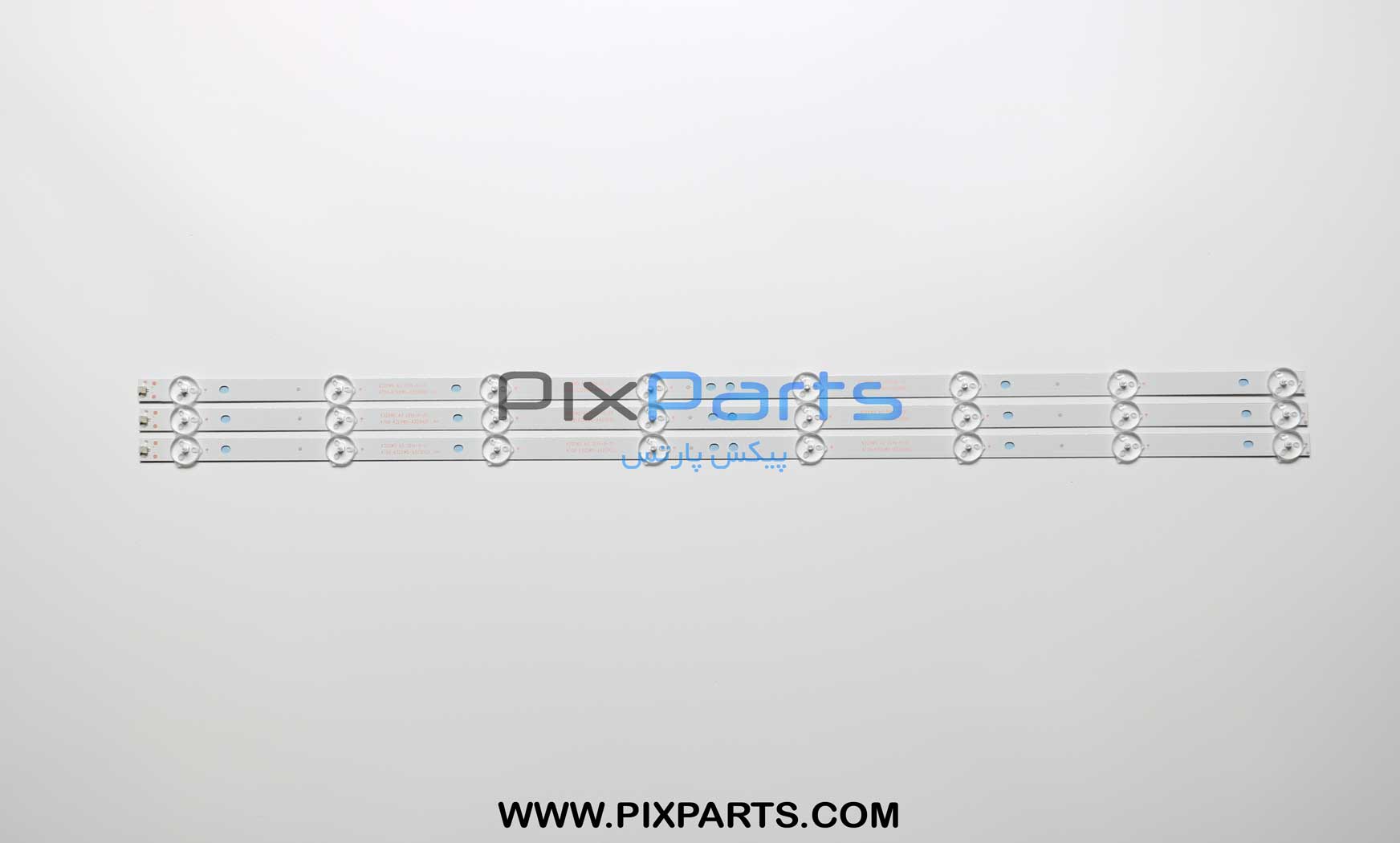 قطعه مورد نظر بک لایت تلویزیون سونیا 32 اینچ SU-3290 _ SU-3288 میباشد که دارای 3 ردیف (3 شاخه) که هر کدام دارای 8 عدد ال ای دی به طول 63cm سانتی متر با ولتاژ کاری 3v ولت میباشد.