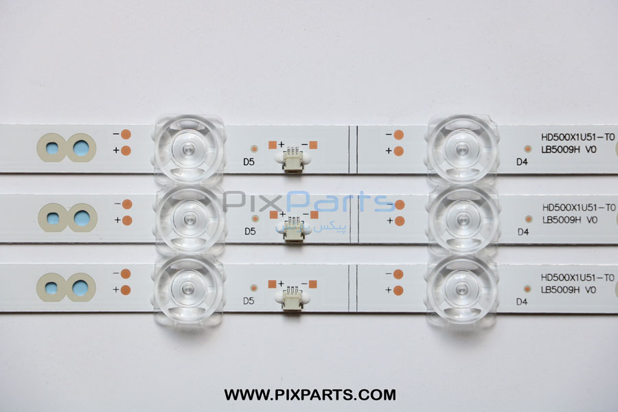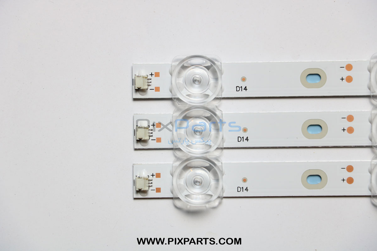 قطعه مورد نظر بک لایت تلویزیون هایسنس 50 اینچ 50A7100 – 50A7120FS میباشد که دارای 3 ردیف (3 شاخه) که هر شاخه دارای 14 عدد ال ای دی به طول 91cm سانتی متر با ولتاژ کاری V ولت میباشد.