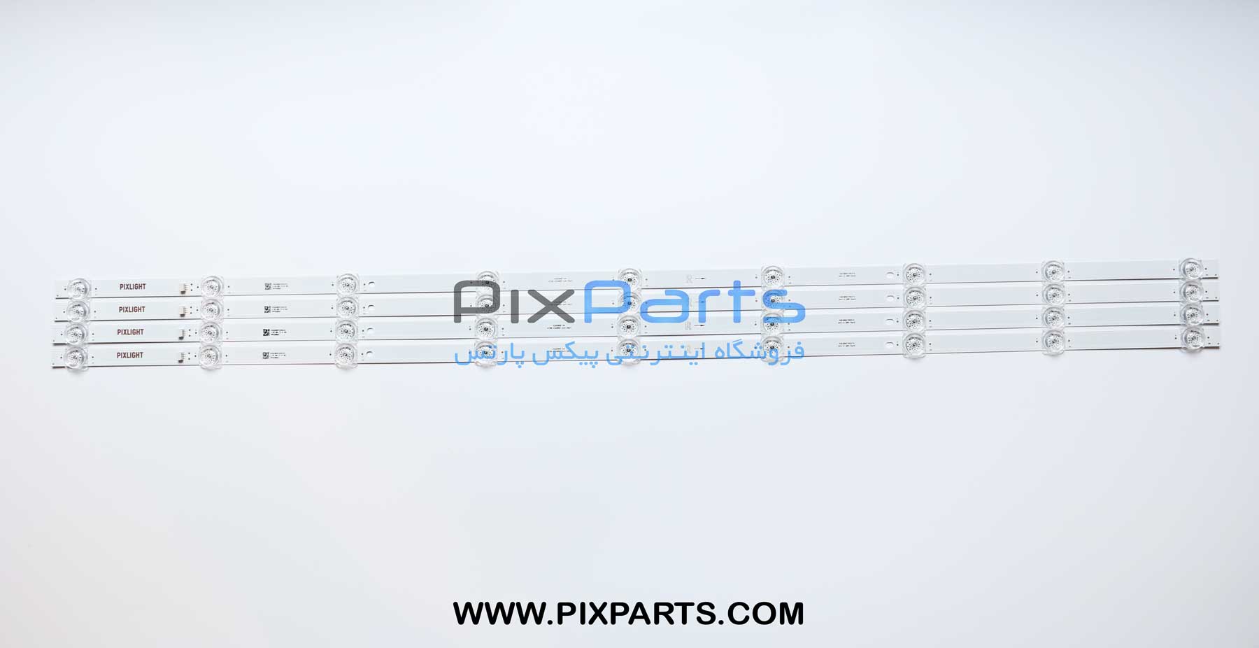 قطعه مورد نظر بک لایت تلویزیون هیمالیا 50 اینچ HM50BA-HM50SF میباشد که دارای 4 ردیف (4 شاخه) که هر شاخه دارای 9 عدد ال ای دی به طول 90cm سانتی متر با ولتاژ کاری 3v ولت میباشد.